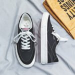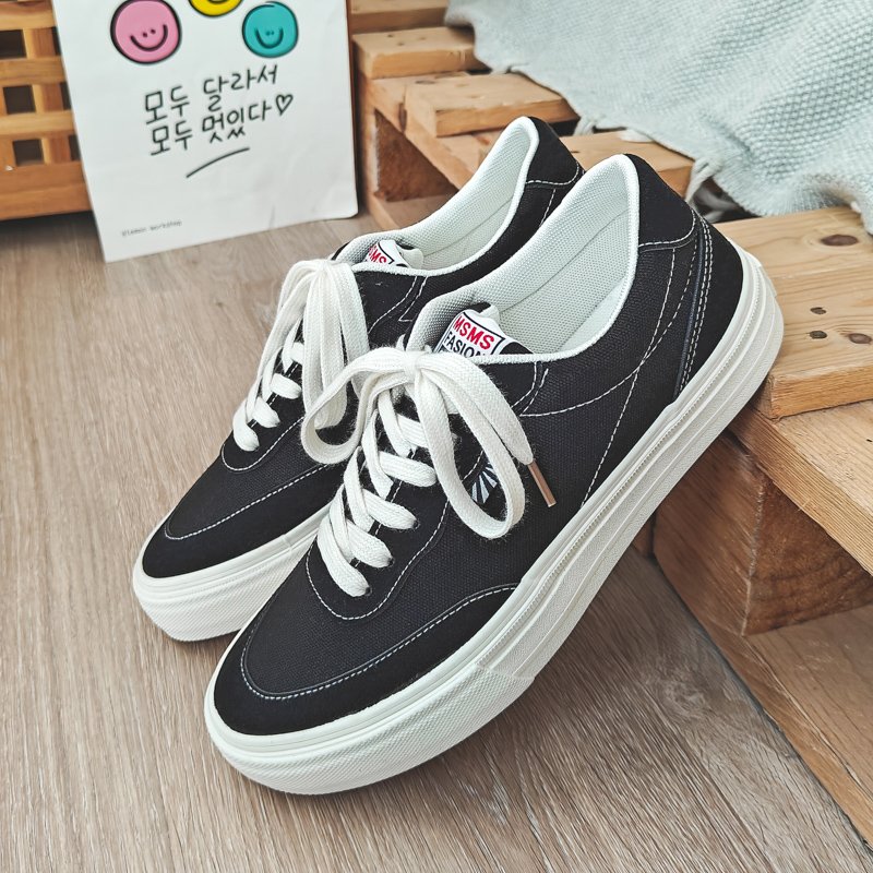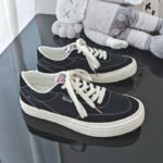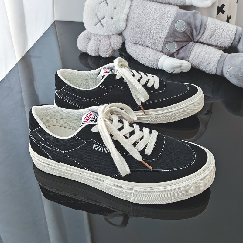 These black and white classic canvas sneakers are inspired by minimalist vintage style, making them a timeless fashion staple. The upper is crafted from high-quality black canvas material with white stitching details, showcasing refined craftsmanship and texture. The white rubber outsole not only enhances slip resistance and durability but also adds a fresh and clean aesthetic to the design. Wide white laces and a reinforced toe cap provide both style and functionality, ensuring comfort and stability during wear. The soft, breathable inner lining keeps your feet relaxed, even during long hours of use. Perfectly versatile, these sneakers pair effortlessly with jeans, casual outfits, or streetwear, making them ideal for daily commutes, casual outings, and various occasions.