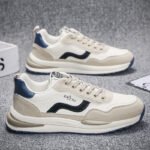 These stylish casual sneakers feature an off-white base with black accents, combining simplicity with a modern design aesthetic. The upper is crafted from premium suede and synthetic materials, offering a soft, breathable, and comfortable feel for extended wear. Equipped with an anti-slip, wear-resistant rubber sole and cushioning for added support, these sneakers ensure stable and comfortable steps. Perfect for daily commutes, casual outings, or light activities, they showcase your effortless fashion sense.