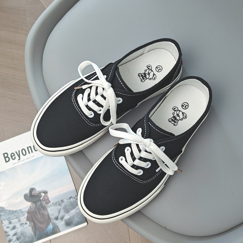 These classic black canvas shoes combine minimalist design with high-quality craftsmanship, making them the perfect go-to choice for everyday wear. The upper is crafted from premium canvas material, offering breathability and lightweight comfort for extended wear. The classic lace-up design is accented . The outsole is made from durable, anti-slip rubber, providing excellent traction and stability for worry-free walking. The soft, comfortable lining conforms to your feet, ensuring a lightweight and relaxed wearing experience. Whether for casual outings, campus style, or daily commutes, these canvas shoes pair effortlessly with any outfit, delivering timeless style with ease.