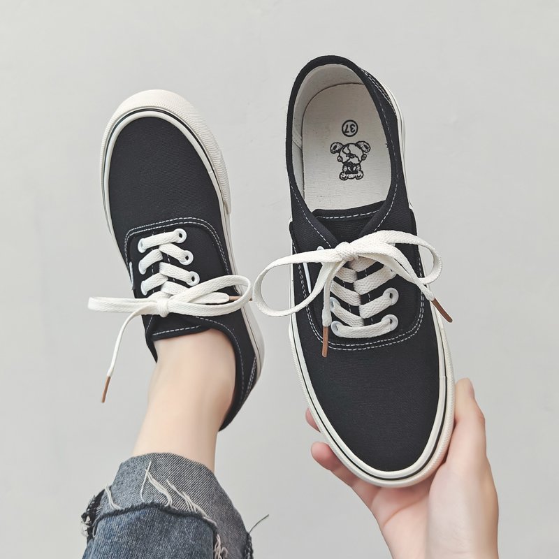Canvas Shoes Low Top Fashion Classic Slip on Canvas Sneakers Lace-up Walking Shoes Tennis Shoes-vt123