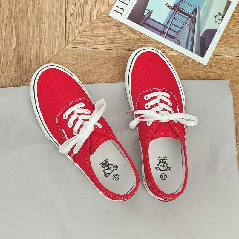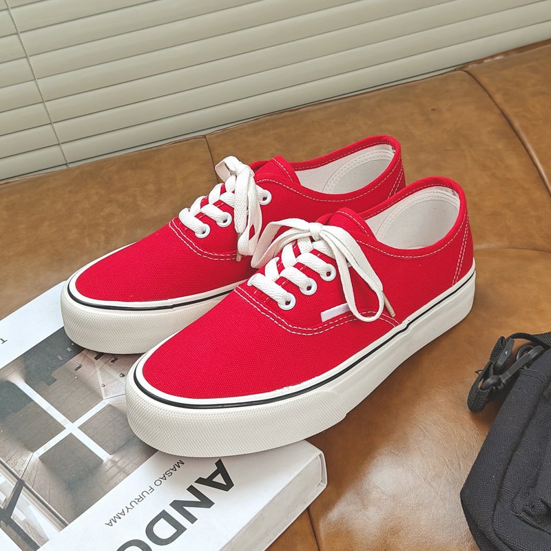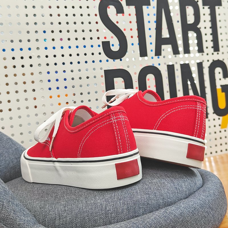 These classic red canvas shoes combine minimalist design with high-quality craftsmanship, making them the perfect go-to choice for everyday wear. The upper is crafted from premium canvas material, offering breathability and lightweight comfort for extended wear. The classic lace-up design is accented . The outsole is made from durable, anti-slip rubber, providing excellent traction and stability for worry-free walking. The soft, comfortable lining conforms to your feet, ensuring a lightweight and relaxed wearing experience. Whether for casual outings, campus style, or daily commutes, these canvas shoes pair effortlessly with any outfit, delivering timeless style with ease.