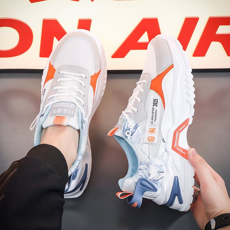 These trendy sports shoes combine style and functionality, designed for consumers who seek individuality and comfort. The upper is made of breathable mesh material, ensuring lightweight comfort, paired with bold graffiti patterns that showcase a unique streetwear style. The thick, anti-slip outsole offers excellent traction and stability, allowing you to move freely during daily wear or outdoor activities. The stylish color-blocking design and intricate detailing add a striking visual impact, making this a must-have fashion item for 2025. Whether for casual outings or fitness activities, these shoes meet your versatile needs and keep you effortlessly ahead of the fashion curve.