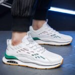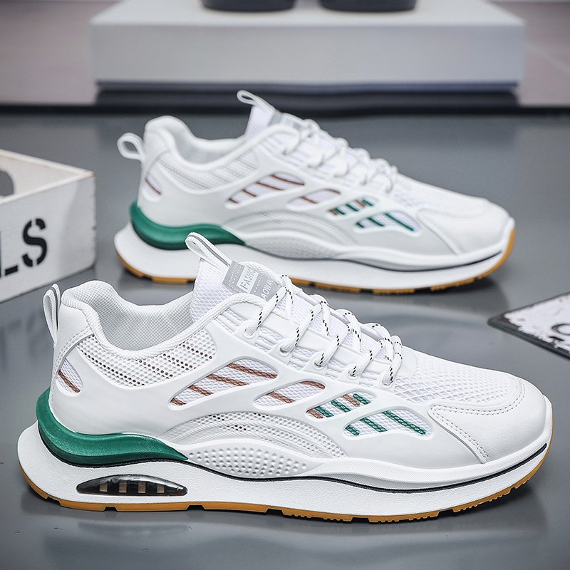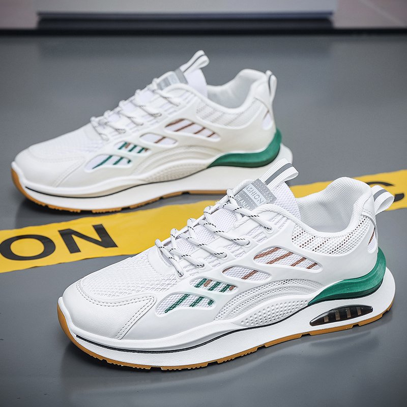 These sneakers combine stylish design with exceptional functionality, providing you with a comfortable wearing experience. Made with breathable mesh material, they keep your feet dry and comfortable. The thickened cushioning air sole offers excellent shock absorption, making them perfect for running, workouts, or daily wear. The outsole features anti-slip and wear-resistant rubber, enhancing grip and stability for safe walking. The clean, modern color scheme paired with a streamlined design makes these shoes versatile for any outfit, blending sport and casual style seamlessly.