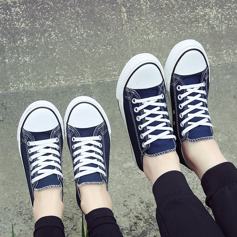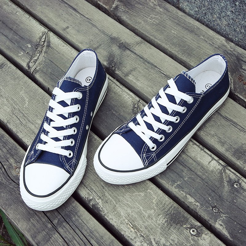 This classic blue low-top canvas shoe is crafted with premium canvas material, offering lightweight breathability for all-day comfort. The durable rubber sole provides excellent grip and wear resistance, making it suitable for various occasions. Its minimalist design, featuring white laces and a rubber toe cap, adds a touch of style and pairs effortlessly with jeans, shorts, or casual skirts. Combining aesthetics and practicality, this pair is the perfect choice for daily wear, travel, or casual activities, giving your steps confidence and energy!