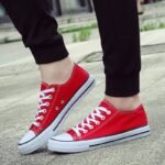 This classic red low-top canvas shoe is crafted with premium canvas material, offering lightweight breathability for all-day comfort. The durable rubber sole provides excellent grip and wear resistance, making it suitable for various occasions. Its minimalist design, featuring white laces and a rubber toe cap, adds a touch of style and pairs effortlessly with jeans, shorts, or casual skirts. Combining aesthetics and practicality, this pair is the perfect choice for daily wear, travel, or casual activities, giving your steps confidence and energy!