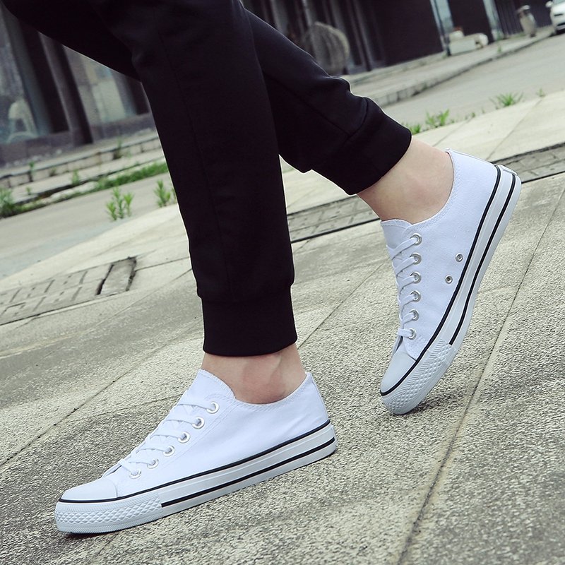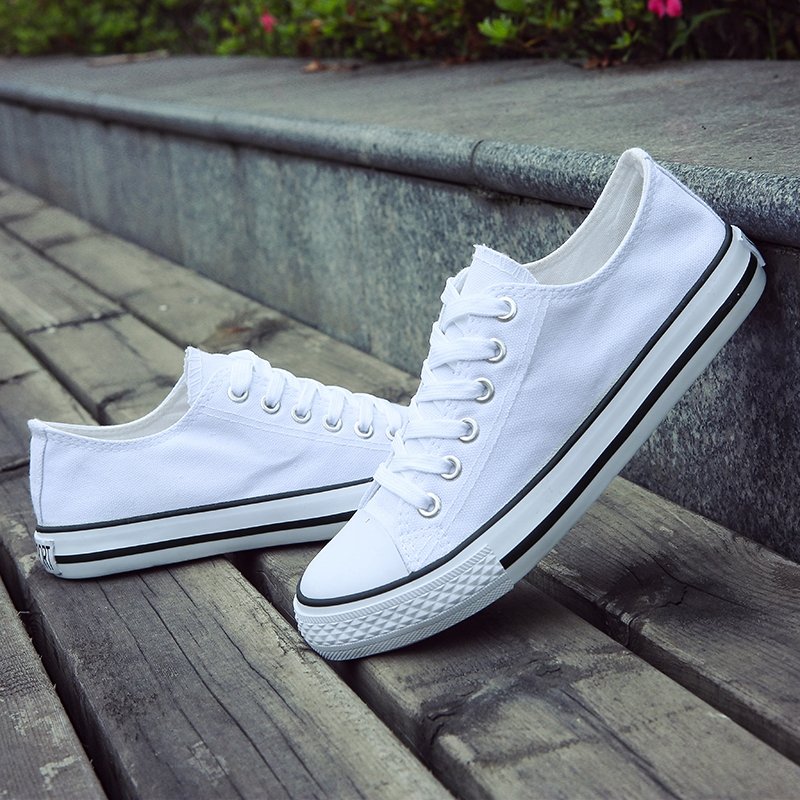 These classic white low-top canvas shoes are crafted from premium canvas material, offering lightweight and breathable comfort for all-day wear. The durable rubber sole is designed for excellent grip and wear resistance, making them suitable for various occasions. With a simple and versatile design, they pair effortlessly with jeans, shorts, or casual dresses, showcasing your sense of style. The clean silhouette and comfortable performance make these shoes the perfect choice for daily casual wear, travel, or light activities. Let these classic canvas shoes become your go-to wardrobe staple, adding a touch of fashion and confidence wherever you go!