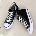 “These classic black high-top canvas sneakers are the ultimate blend of timeless style and everyday comfort. Featuring a durable canvas upper, breathable design, and a sturdy rubber sole, they are perfect for casual outings or completing your streetwear look. With their unisex appeal and versatile design, these sneakers are a wardrobe essential, offering both style and functionality for any season.”