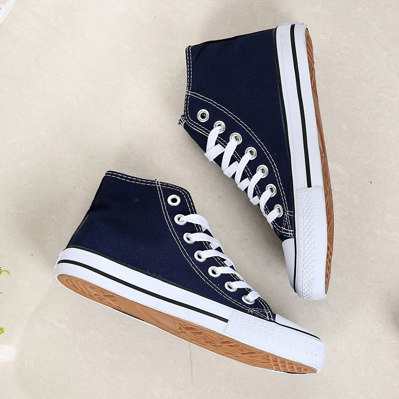 “These classic blue high-top canvas sneakers are the ultimate blend of timeless style and everyday comfort. Featuring a durable canvas upper, breathable design, and a sturdy rubber sole, they are perfect for casual outings or completing your streetwear look. With their unisex appeal and versatile design, these sneakers are a wardrobe essential, offering both style and functionality for any season.”