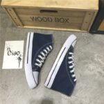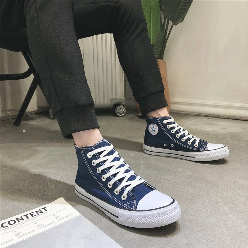 This classic blue high-top canvas shoe features a simple and elegant design, making it a versatile choice for everyday wear. The upper is made of high-quality canvas material, offering breathability and durability for all-day comfort. The non-slip rubber sole enhances grip, ensuring walking safety. The timeless blue-and-white color combination is stylish yet understated, suitable for various occasions, including campus life, casual outings, or daily commuting. The reinforced toe design improves durability, while the white laces add a touch of brightness to the overall look. This unisex shoe is an ideal choice for those seeking both comfort and style.