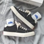 These classic black and white low-top sneakers feature a black suede upper and a white rubber sole, delivering a timeless and versatile design. The fine stitching and smooth lines add a touch of premium quality. The soft, breathable upper ensures comfort for extended wear, while the durable, anti-slip rubber sole provides excellent grip, making it perfect for daily commutes, casual outings, and various occasions.