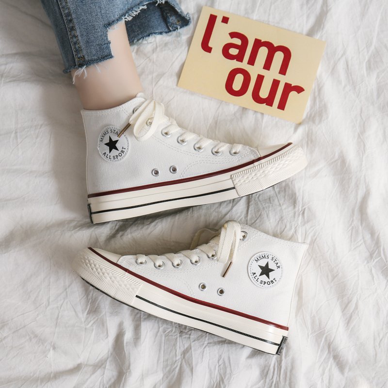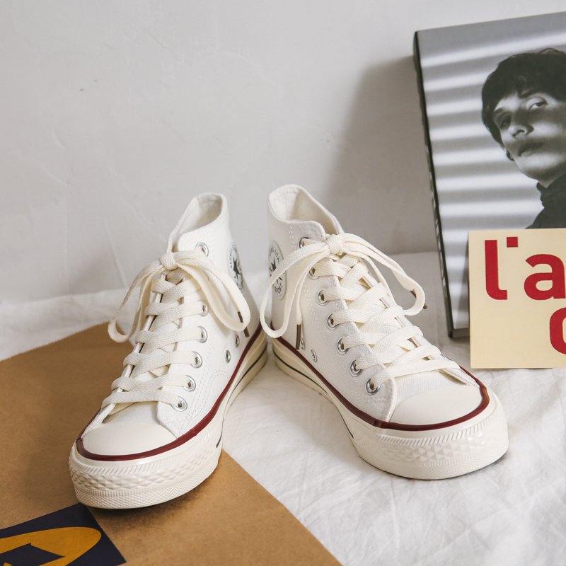- Classic High-Top Design, Versatile Style: Featuring a simple and timeless high-top silhouette with off-white canvas, combining retro charm with modern fashion for any outfit.