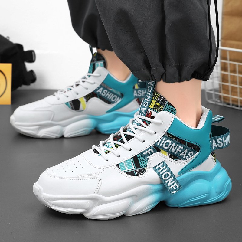 This stylish sneaker combines trendy design with excellent performance, making it an ideal choice for daily wear and outdoor activities. The upper is made of high-quality synthetic material for durability and abrasion resistance, featuring unique colorful printed elements and striking blue accents that showcase personality and energy. The thick sole structure provides superior cushioning, ensuring comfort during long walks. The lace-up design enhances support and secures the foot for a better wearing experience. Whether for casual wear, street fashion, or sports activities, these sneakers are a must-have addition to your trendy wardrobe.