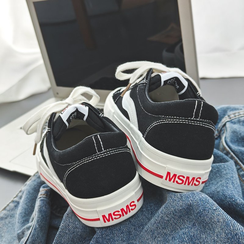Fashion black and white color scheme walking style vulcanized shoes low top canvas trend shoes-vt59