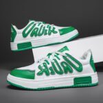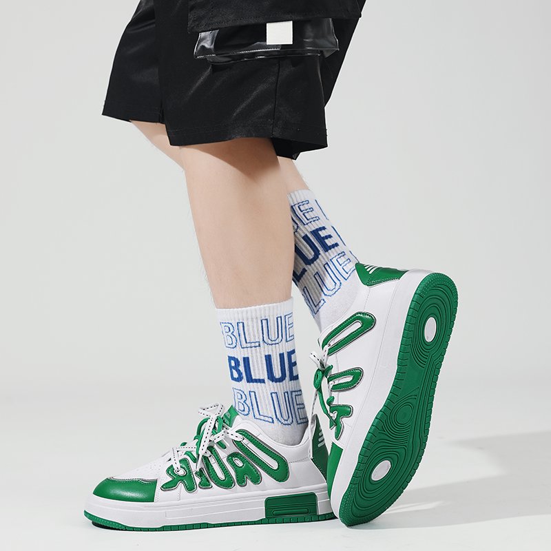 This pair of green and white spliced casual sneakers is designed with bold street style, making you the center of attention. The upper combines premium leather and breathable mesh, ensuring both fashion and comfort for an exceptional wearing experience. The unique 3D letter embellishments highlight a trendy and personalized look. The anti-slip and wear-resistant rubber outsole provides excellent traction and ensures safe and stable walking. The lightweight and comfortable insole offers lasting support for your daily activities. Whether for casual wear or sporty outings, these stylish sneakers are the perfect choice to help you effortlessly step into the spotlight!