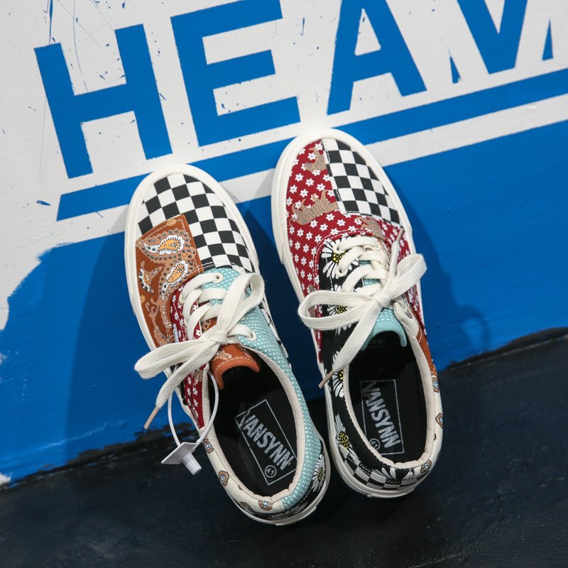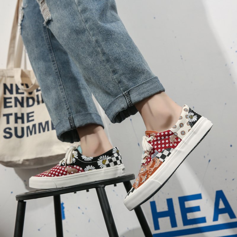 These stylish casual sneakers feature a unique patchwork design that combines the classic black-and-white checkerboard pattern with vintage Bohemian floral prints, creating a one-of-a-kind, standout look. Made from high-quality canvas material, they are breathable and lightweight, ensuring all-day comfort without any pressure. The anti-slip, wear-resistant rubber sole provides excellent grip and durability, making them ideal for daily outings, street style, and campus life. Whether you are a trend-conscious youth or a fan of retro fashion, these sneakers are a must-have addition to your wardrobe!