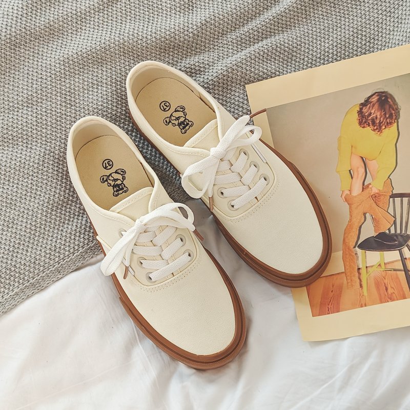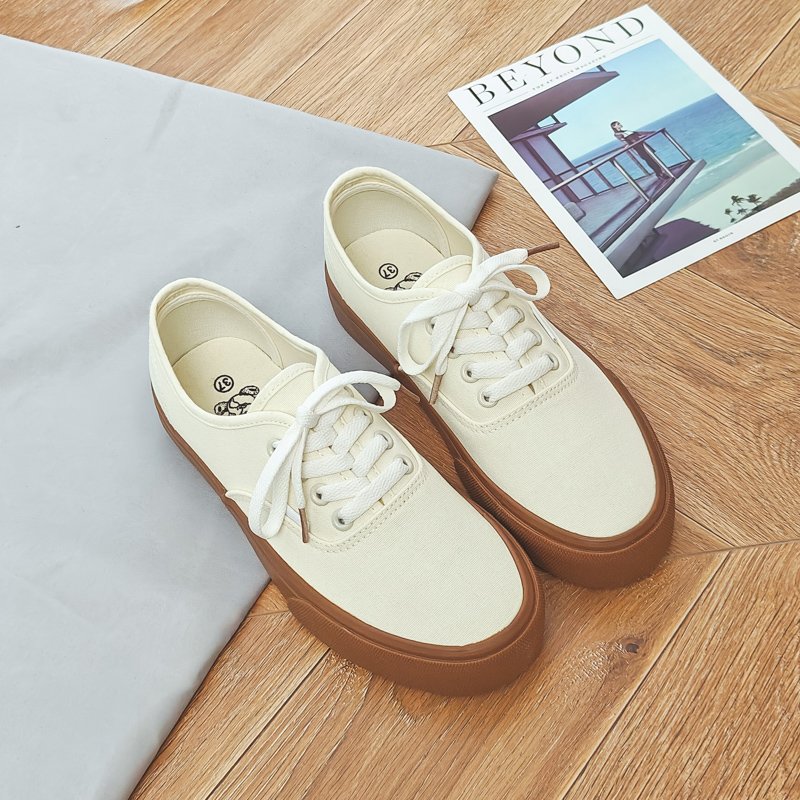 - Retro Design, Stylish and Versatile: The cream canvas upper combined with a vintage brown sole exudes timeless charm, effortlessly matching a variety of outfits.