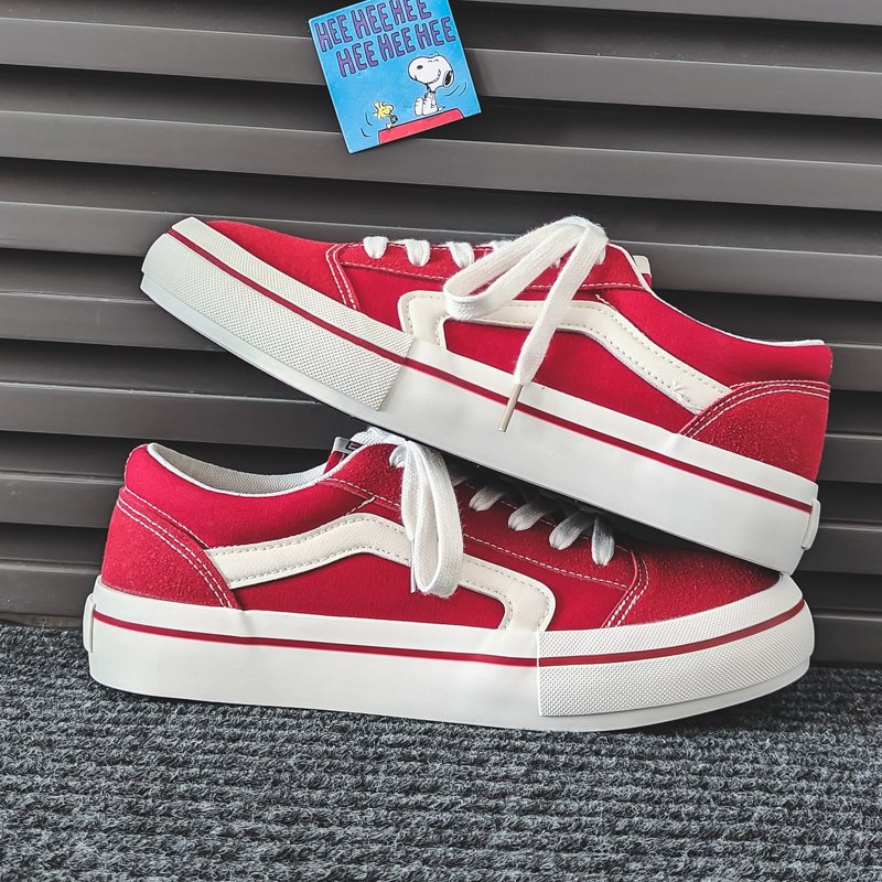 - Vibrant Red, Eye-Catching Design: The bold red upper paired with clean white stripes creates a striking look, perfect for standing out in any crowd.