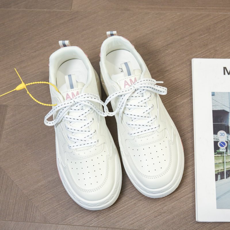 These trendy chunky sneakers feature a fresh all-white design accented with soft pink details, perfectly blending simplicity with elegance. Crafted from premium synthetic leather, the upper is smooth, breathable, and durable, ensuring long-lasting comfort for daily wear. The thick cushioned sole provides excellent support and a lightweight feel, making them ideal for commuting, casual outings, or trendy streetwear. Step into confidence and style for any occasion.