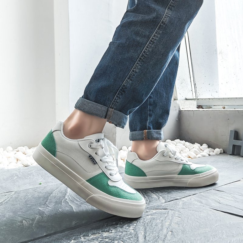 These trendy casual sneakers feature a classic white base accented with refreshing mint green panels, creating a clean and vibrant look. Made with premium synthetic leather and suede materials, the upper is soft, breathable, and durable, ensuring long-lasting comfort for all-day wear. The sturdy rubber outsole provides excellent grip and wear resistance, making them perfect for any occasion. Whether for daily commutes, casual outings, or stylish streetwear, these sneakers are your perfect choice.
